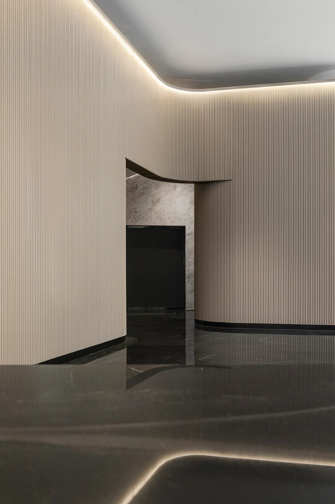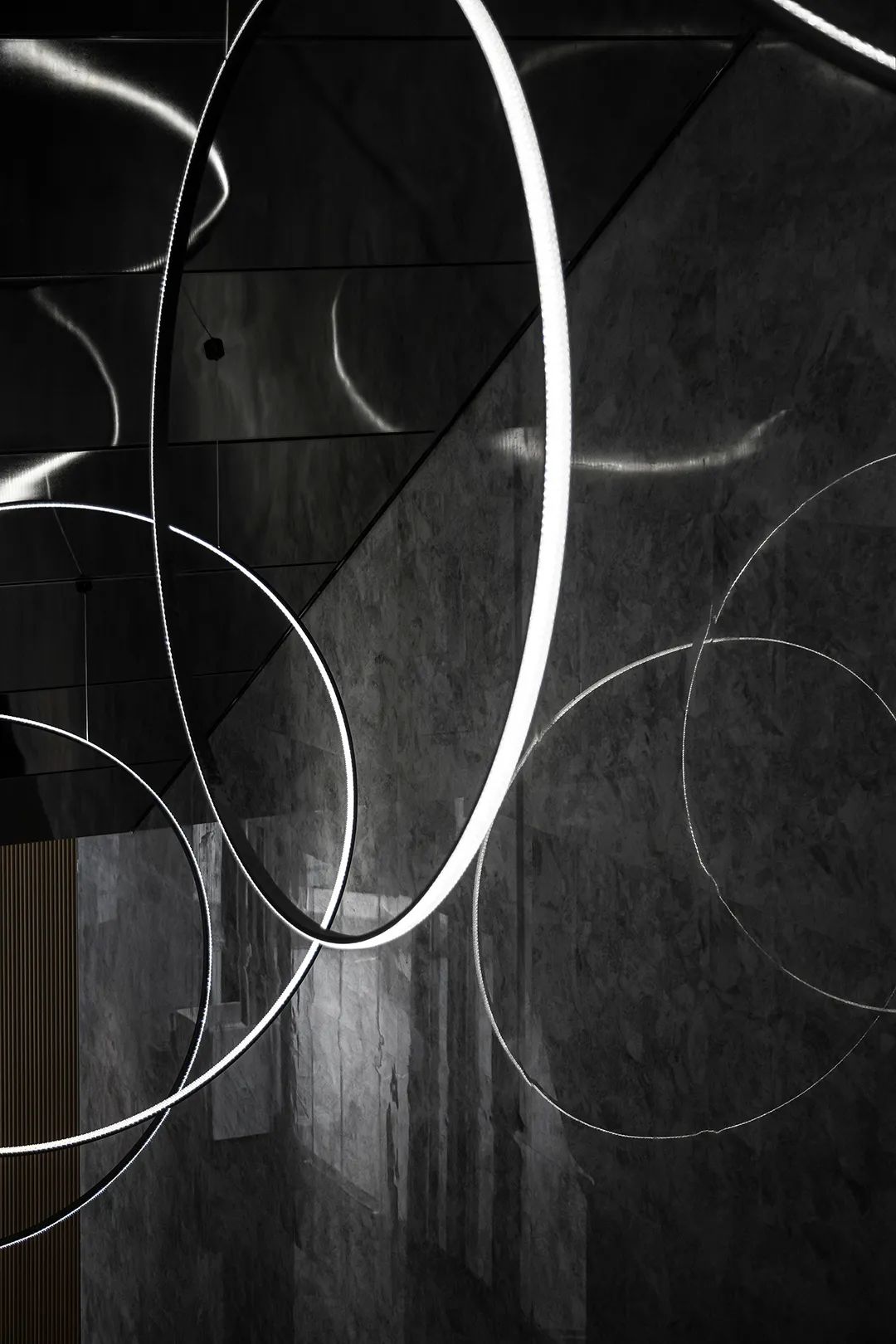 空間亮點(diǎn)在于,通過新媒體、交互藝術(shù)裝置、科技藝術(shù)裝置三大渠道,借由技術(shù)、工藝與美學(xué)的交織,讓人享受當(dāng)下,感知未來,從而探索未來。在這一宏大的設(shè)計(jì)構(gòu)想下,空間是對信息化時(shí)代的隱喻,“人們進(jìn)入的銷售中心,我們將其擬作信息中心,設(shè)想來訪者是其中的信息源,以數(shù)字化狀態(tài)對信息中心進(jìn)行探索,實(shí)現(xiàn)人與空間的新型交互。”