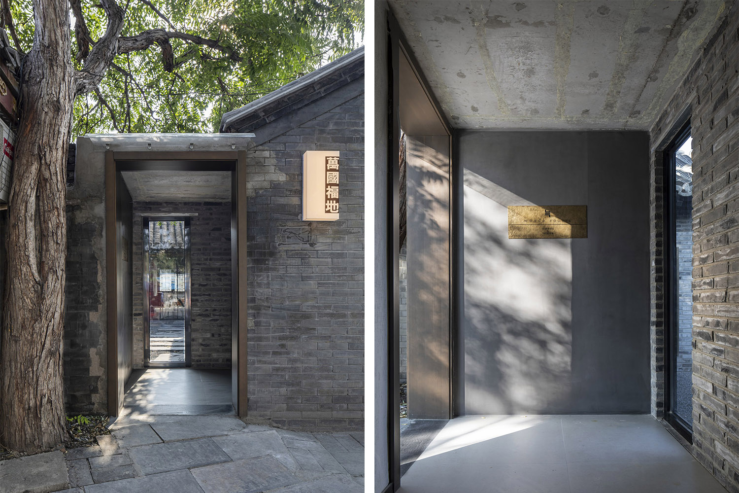 原生場地是一個面朝南新華街的合院。從狹窄的入口通行,空間關(guān)系是北京傳統(tǒng)四合院的簡化版,我們對院子做了重新解構(gòu)——盡管原有的空間屬性是全封閉的,設計師希望仍然保持疏密有序的感覺,因此將封閉的院子做得盡量通透、明亮。我們注重進入內(nèi)庭院后的感受,來訪者所見皆是自己視野內(nèi)的建筑,這是貫穿在設計過程中的邏輯,既需要有一定的透氣感,也要保證私密性。