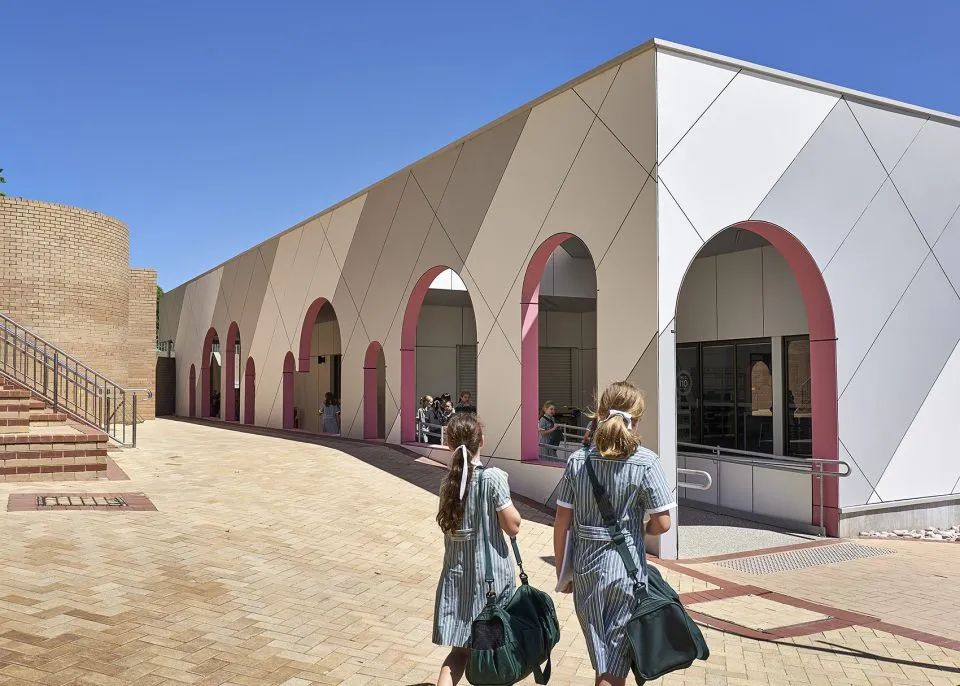 項目位于一個陡峭的斜坡上,內容包括對一棟遺產建筑以及一棟建于1980年代的教學樓進行翻修,同時額外修建一棟新的建筑。這三棟建筑各自擁有不同的樓層。受到保護的校園核心地帶坐落著寬闊的天然操場,這里也是該項目的亮點所在。操場與教室形成了積極的連接,可作為教學空間的延伸,同時為各個功能空間提供了適宜的路徑。